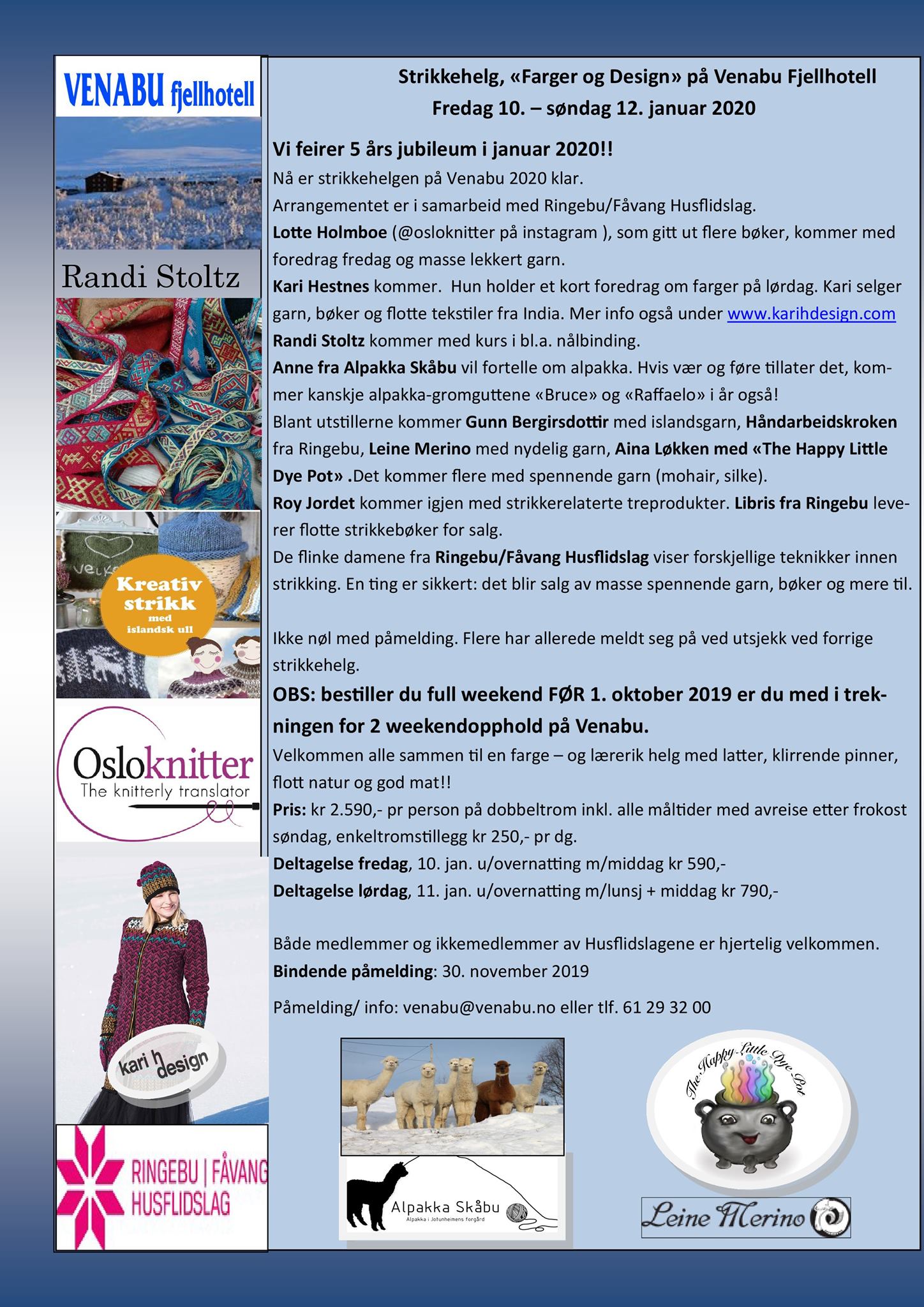 For mer informasjon og priser se: https://www.venabu.no/aktiviteter19/strikkehelg-2020