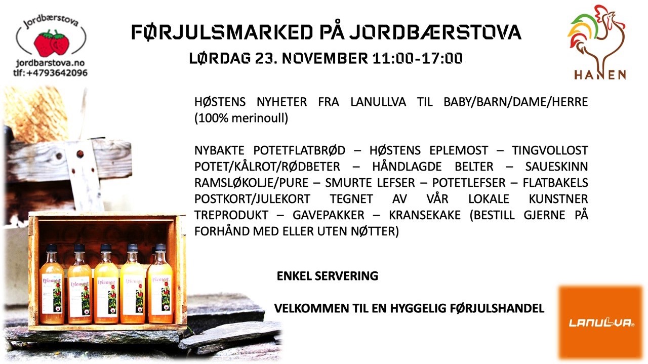 Førjulsmarked på Jordbærstova med Lanullva og Tingvollost og mange andre lokale utstillere!