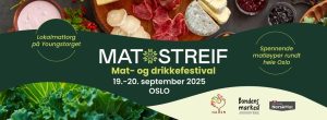 Arrangement av Matstreif, Stiftelsen Norsk Mat og HANEN Bli med på Oslos største mat- og drikkefestival 19.-20. september i Oslo! HANEN, Bondens marked og Stiftelsen Norsk Mat lover en fest av norske smaker du ikke vil gå glipp av! Nyt fantastisk norsk lokalmat og - drikke fra hele landet Opplev spennende arrangementer og stor matfestival på Youngstorget Ta med venner og familie til hjertet av Oslo! Støtt norske, lokale produsenter og bli med på feiringen av norsk mat- og drikkekultur Velkommen til Matstreif 2025…