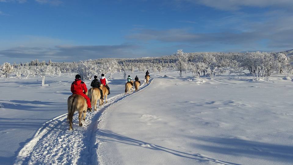 Vi deler inn i ridegrupper etter deltakerens individuelle nivå. Du vil også få være med på kos og stell med husdyra våre, historiefortelling   foran peisen, besøk hos fjellrev og reinsdyr, oppleve gaupe, elg og ulv på nært hold. Anbefalt alder: 9 – 17 år.